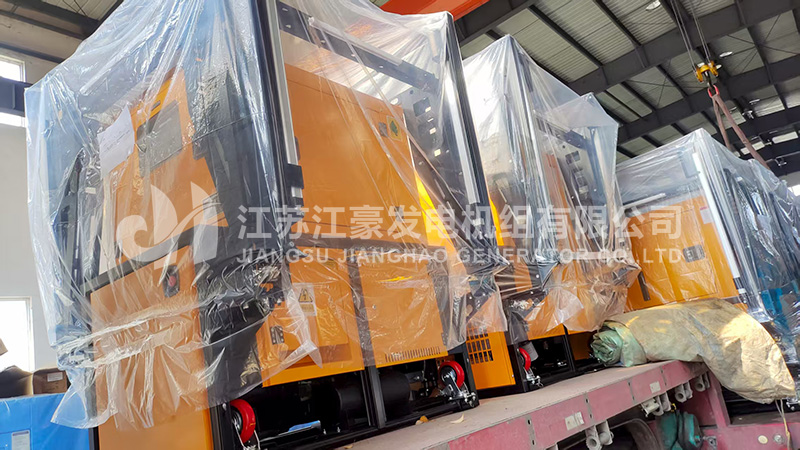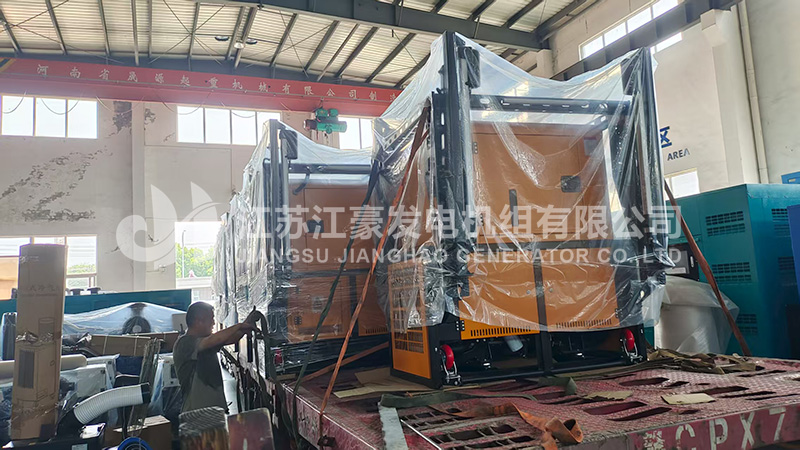 15臺30kW江豪自卸式柴油發電機組發貨,我公司工程師對機組進行了全面的出廠前檢測調試后,各項指標符合國家標準,下圖為機組出廠現場