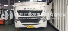 我公司年前成功出廠一批由康明斯發動機提供動力的柴油發電機組,總數共計15臺 下圖為裝柜照片 工人正在用鏟車將包裝好的發電機組裝入集裝箱中 吊車將發電機組吊上拖車 拖車駛向港口